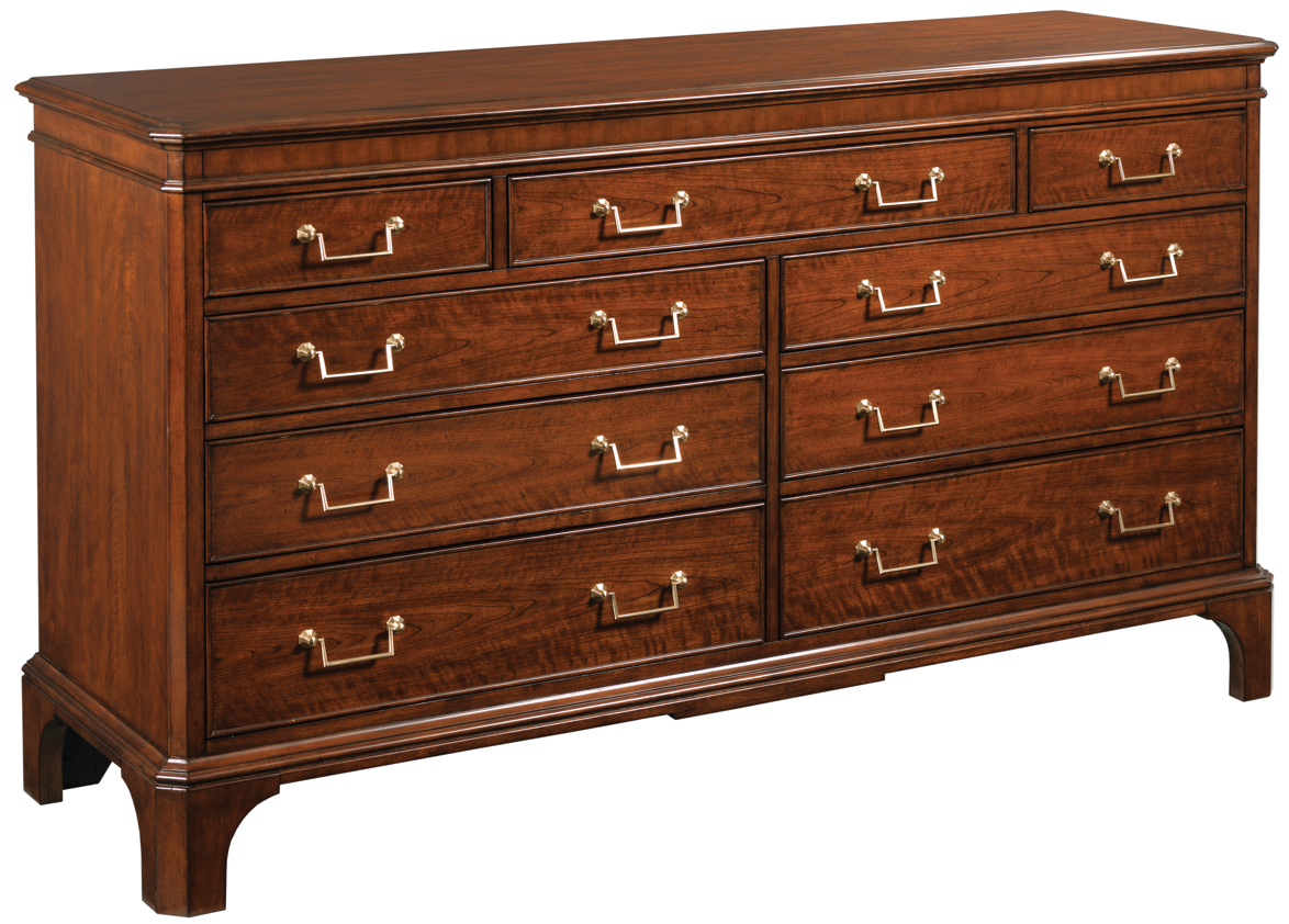 The American Drew® Addison Andover Cherry/Walnut Dresser features walnut inlays within the cherry wood, creating an elegant contrast. The walnut inlays are embedded into the cherry surface, adding a refined, decorative touch. This dresser combines functionality with intricate detailing, making it a stylish and practical addition to any bedroom.Read More