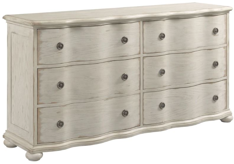 This dresser is uniquely crafted of white oak veneers and select solids with six gently curving drawers all adorned in a creme finish. With the whimsical personality of a rural French cottage, Cambric inspires a calming sense of grace and elegance.Read More