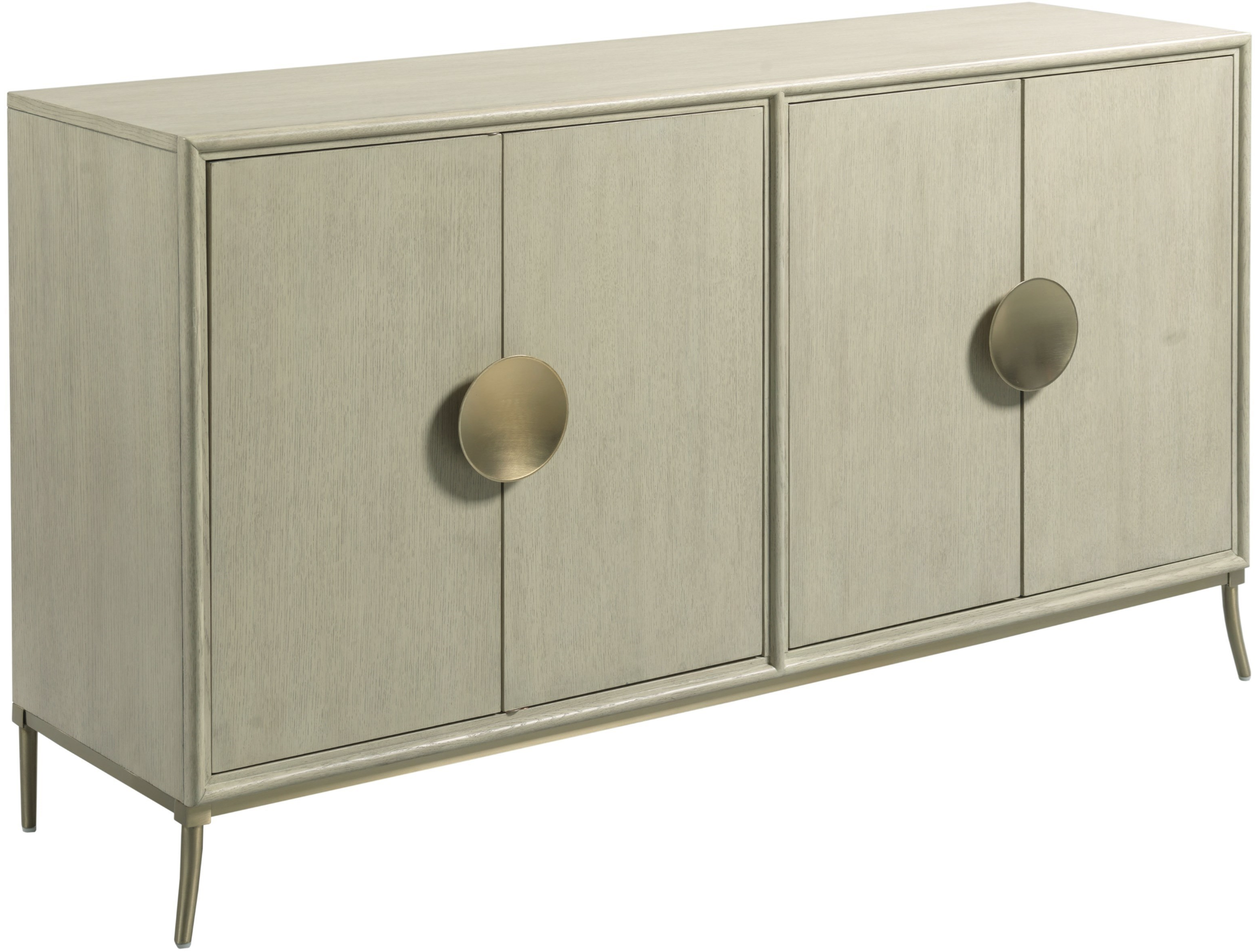 The Launa credenza features four doors; behind each set of doors is one drawer and one adjustable shelf. Located in the left and right side drawers are removable brown felt liners. The piece features adjustable levelers.Read More