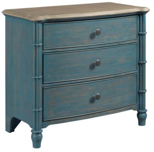 Soft finished denim blue accent chest with a driftwood top can fit any room in the home. It can go from bedroom, living to any room with three drawers for storage.Read More