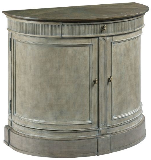 Beautifully shaped demi-lune bachelor chest has two doors with an adjustable shelf for storage with a mocha elm finish top. Finely appointed details and casual, balanced structure contribute to Savona's Old World European feel.Read More