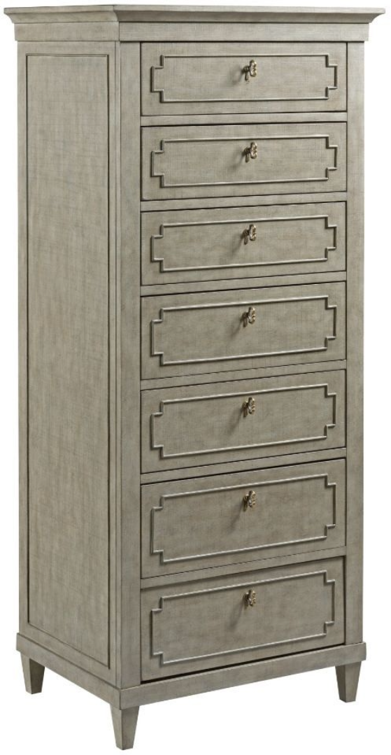 This clean lined lingerie chest has everything you need for smaller rooms. Tall chest with lot's of storage in seven drawers and cedar lined bottom drawer. Drawer dividers make up two of the drawers and a jewelry tray insert in top drawer. Awesome piece with a smaller footprint.Read More