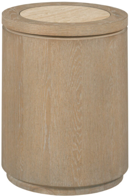 The American Drew® Windover Gatner Brown Drum Table features a unique, circular design with a rich brown finish. Its versatile shape and compact size make it ideal for smaller spaces, offering both style and functionality. The table provides a stylish surface for decor or drinks while complementing various interior designs.Read More