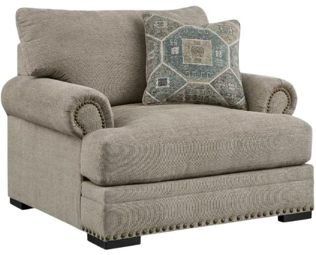 Looking to enhance your home's visual appeal? This oversized chair offers sophisticated design, comfort and elegance with tonal colors, roll arms and nailhead accents. Enjoy optimal coziness as you nestle into luxurious soft upholstery and feather-blend cushions. Perfect for modern spaces, it's just the spot to sit back and relax in style.Read More