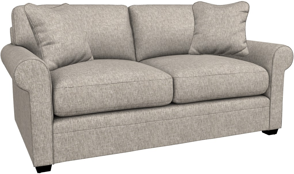 Rolled arms, decorative wood legs and welt trim lend laid-back sophisticated style