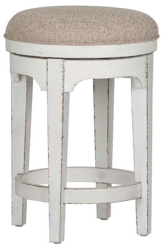 Magnolia Manor console stools are very versatile and can be used with our console bar, kitchen island or counter height tables. Features a cushioned upholstered seat with a return swivel seat. Fabric content is 35% cotton and 75% polyester.Read More