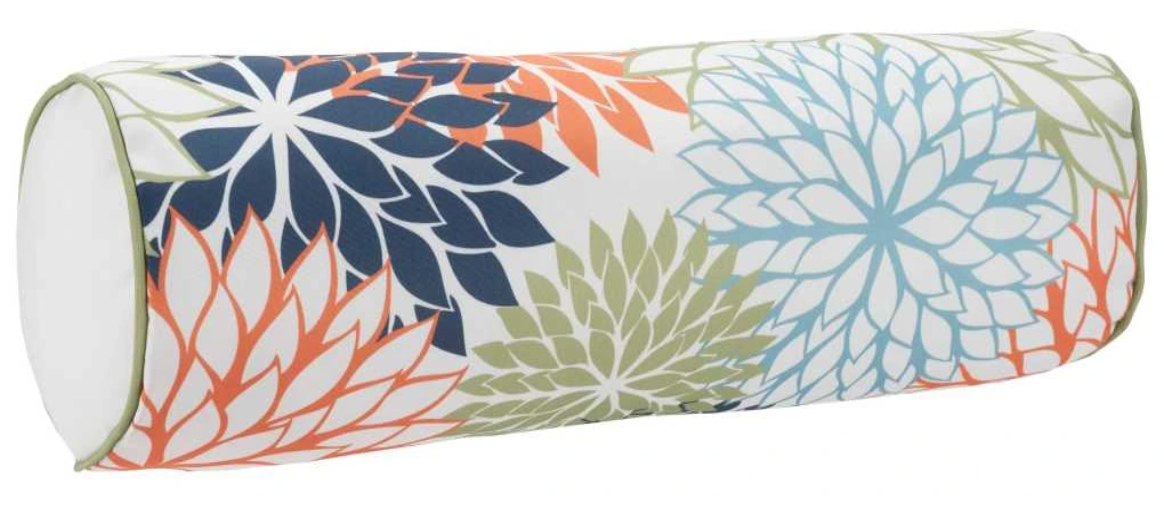 Toss tropical style onto your couch or patio furniture with this outdoor bolster pillow from the Aloha collection. The oversized floral pattern is printed in bright orange, green, and blue on smooth polyester fabric framed at both ends with green piping.Read More