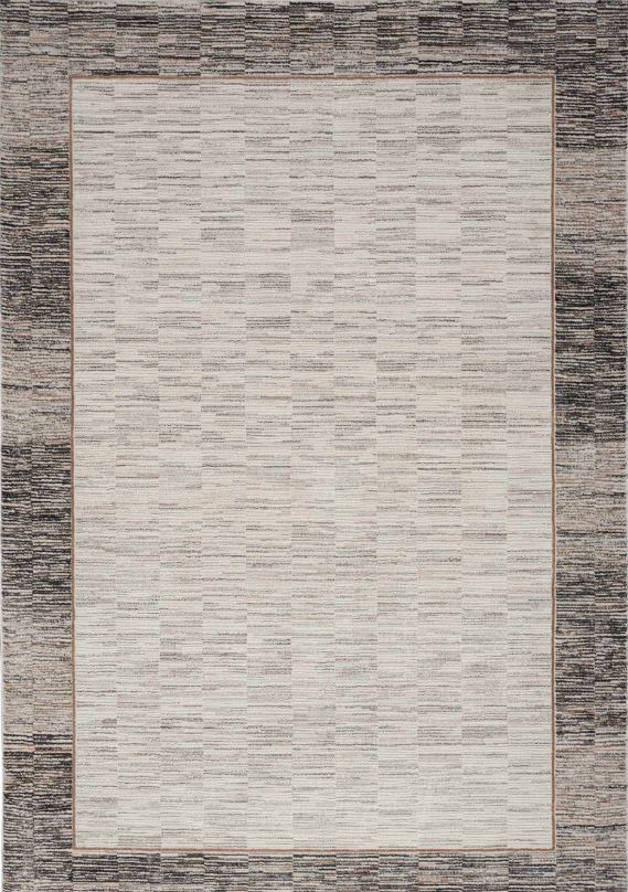 Refresh your space with the clean linear pattern of this geometric rug from the Desire Collection. The heathered dark grey base is overlaid with a broken stripe design, contrasting charcoal and white linear border, and subtly carved accents that create visual interest.Read More