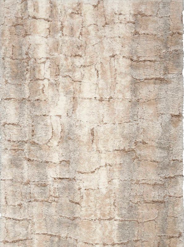 Dreamy Shag is machine made of polyester in a combination of neutral ivory and grey hues that fit seamlessly with modern styles.