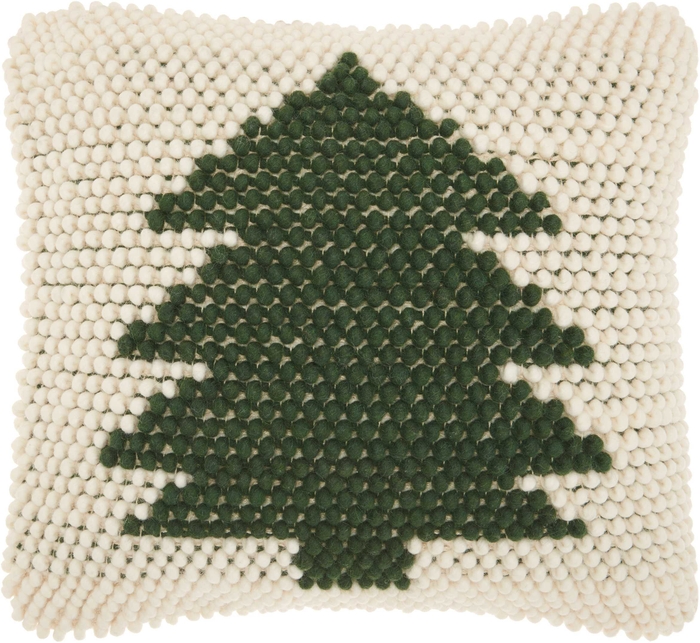 Home for the Holidays takes on fresh appeal when you accent your living room, family room or other gathering space with the rustic charm of this Mina Victory Holiday throw pillow. Handcrafted in a delightfully textural loop, the 20 x 20 square pillow frames a classic fir tree in wintergreen on ivory.Read More