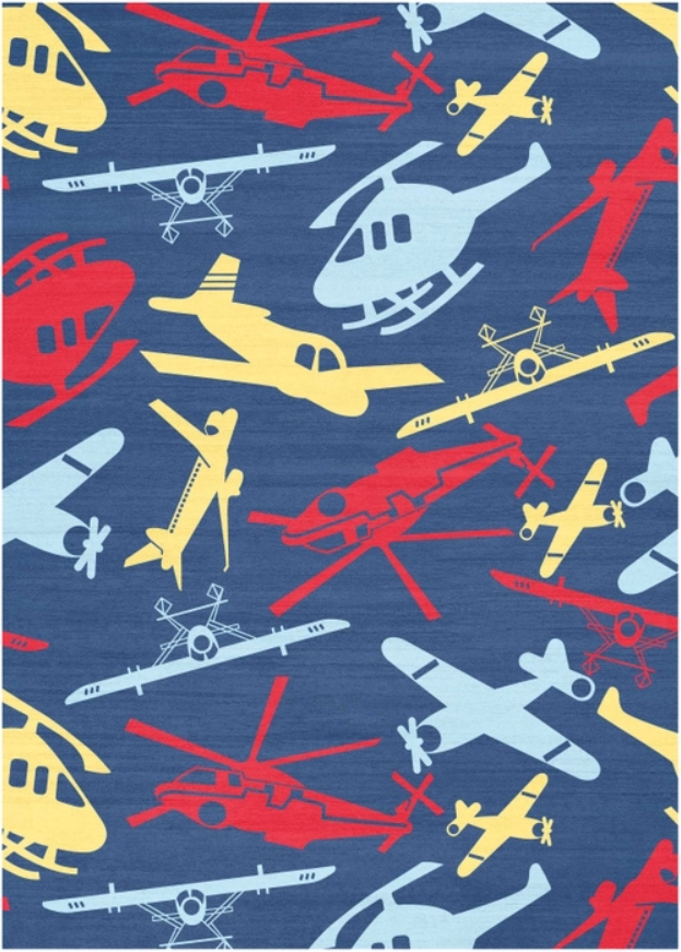 Ignite your childs sense of adventure with this dynamic kids airplane-themed rug from the Imagination collection. The vibrantly printed pattern features planes and helicopters on a dark blue sky, which is complete with a non-skid backing for added safety during everyday play.Read More