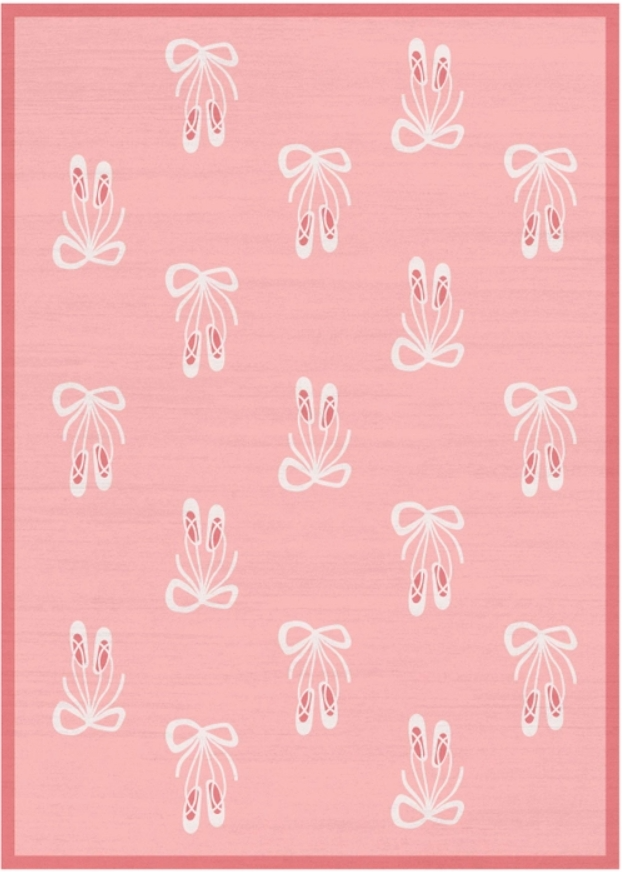 Add a touch of elegance to your childs room with this kids rug from the Imagination collection. The soft pink background and delicate slipper pattern evokes a sense of grace, perfect for little dancers. This washable rug is made from polyester with a non-skid backing for soft comfort and security.Read More