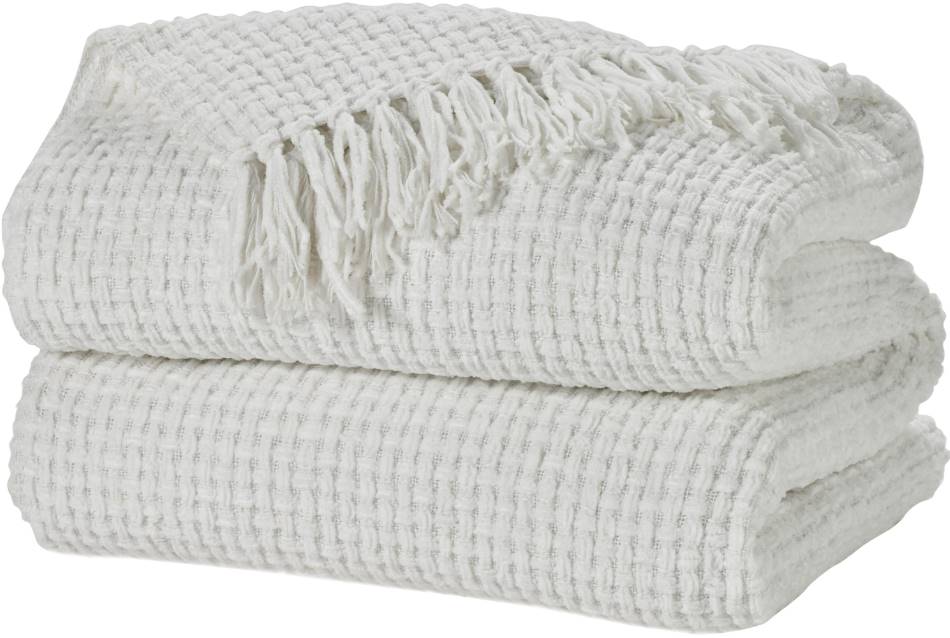Waffle-style weave and tasseled fringe adds warmth and visual appeal