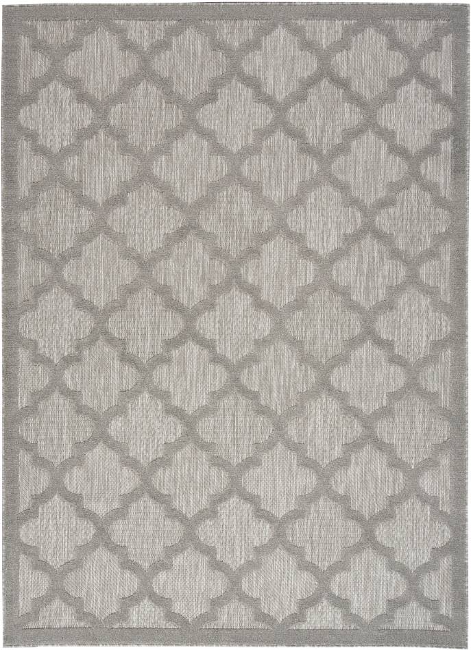 Ground your indoor or outdoor seating area in the stylish appeal of this indoor/outdoor rug from the Easy Care Collection. With a backdrop that showcases multiple flatweave styles, enhanced by a raised Moroccan trellis pattern in silver grey, this contemporary rug adds an appealing sense of depth to your surroundings.Read More