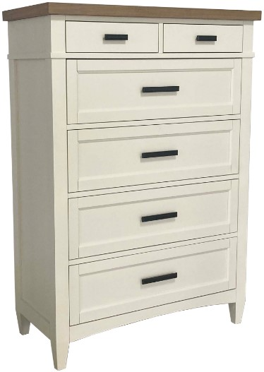 This six-drawer chest is expertly crafted from poplar solids and birch veneers with an oak veneer top and boasts a fresh, hand-painted cotton finish with a contrasting weathered natural top that exudes timeless charm. Solid-metal custom hardware in an authentic burnished bronze finish adds a touch of elegance to this piece.Read More