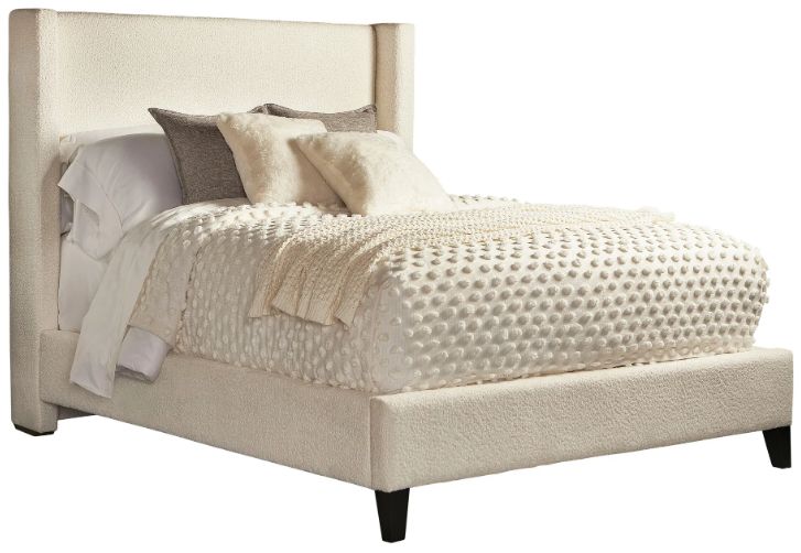 Tailored to perfection, the stately Angel bed creates a signature design aesthetic. Its tall, slightly winged headboard creates the perfect backdrop for reading or watching a favorite show, while its classic silhouette enhances the beauty of any bedroom. Upholstered in a soft, textural bouclé fabric.Read More