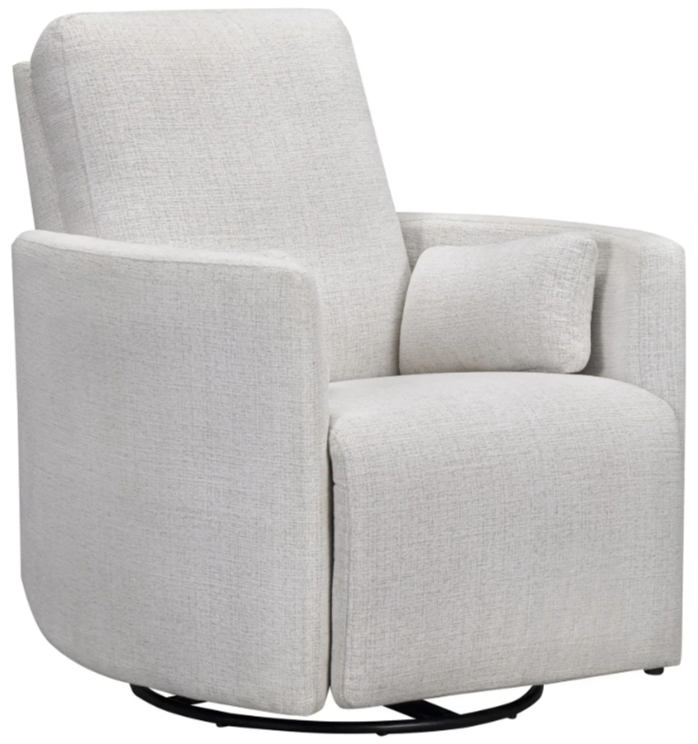 The Turner manual swivel glider recliner is a sanctuary of comfort wrapped in elegance. Its smooth manual reclining mechanism, 360-degree swivel, and gentle gliding motion create a soothing experience, while rounded arms and two matching removable side pillows add softness and style.Read More