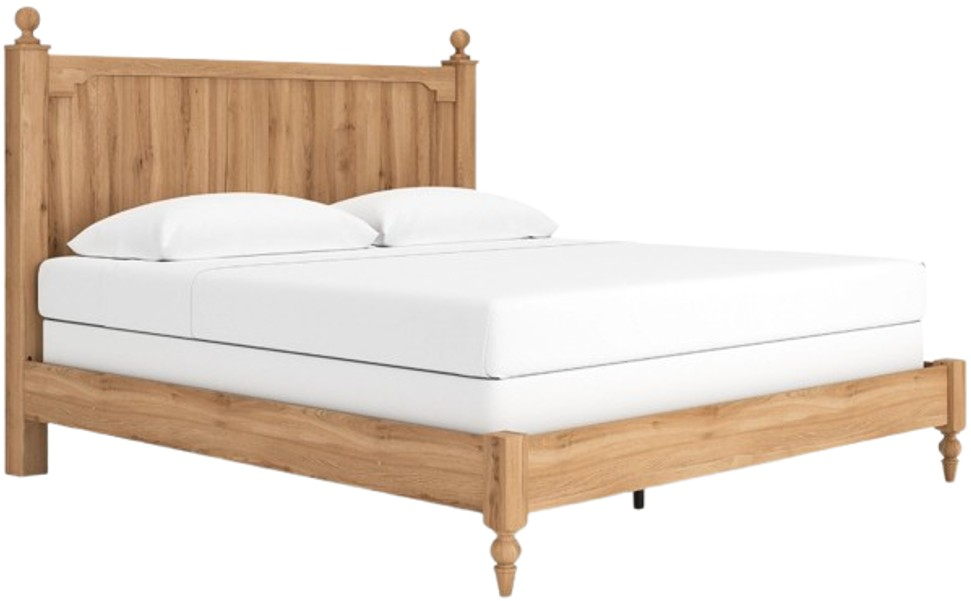 Country rustic. Vintage inspired. However you see it, you’re sure to be charmed by this king panel bed and its relaxed mix of picturesque aesthetics. A gracefully shaped rail brings dimension to the headboard, while decorative ball tops and turned legs adorn the silhouette in quaint fashion.Read More