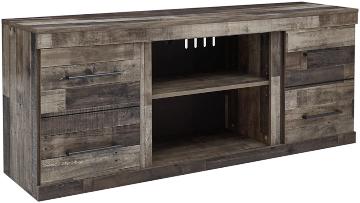 Make this TV stand with fireplace option the center of attention with its urban eclectic style. Its rustic finish over a replicated pine grain creates an authentic natural look for your home entertainment area. You'll love its functionality. Open and closed-door storage with adjustable shelving accommodates media needs.Read More