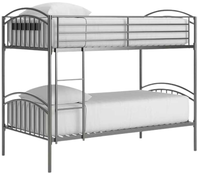 Save space and let little ones snooze in style. This bunk bed's steel gray finish pairs with a variety of colors and aesthetics. Its ladder position adjusts to the left or right side to suit a bedroom's layout.Read More
