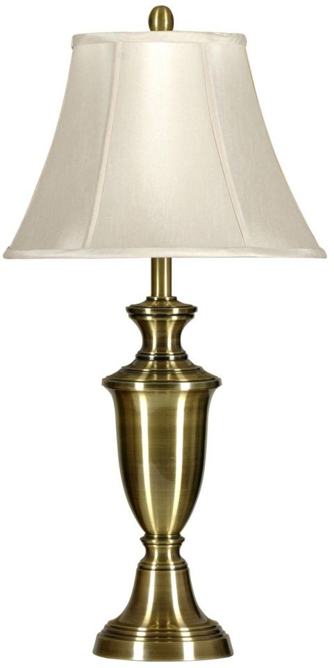 StyleCraft Pair Of Steel Table Lamps with antique brass and round bell silk shadesRead More