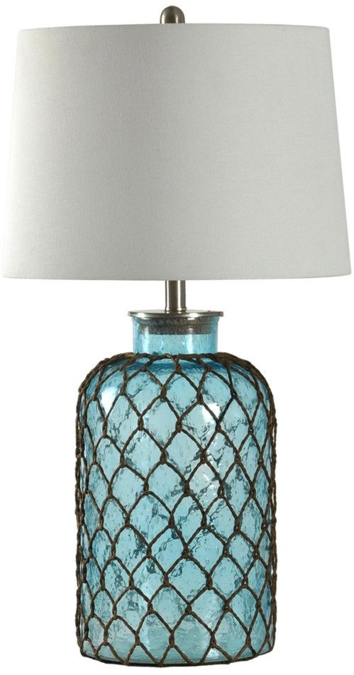 StyleCraft Seeded Glass Lamp with netting and white linen shadeRead More